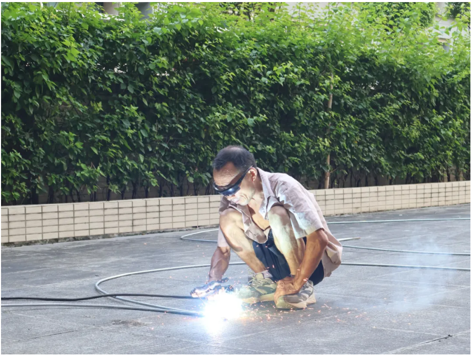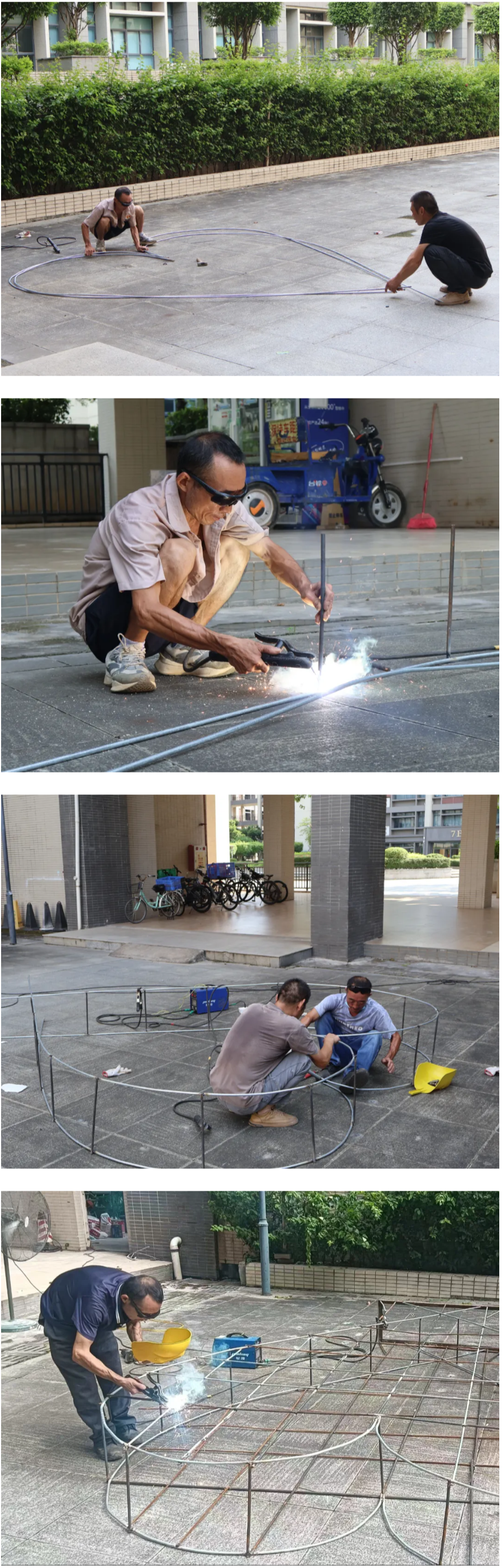 后勤团队从零开始,自主完成了这项工程。施工过程师傅们反复推敲每个细节:每一根钢条的弯曲弧度都经过反复调试;焊接时,师傅们全神贯注,确保每个焊点都饱满均匀,火花飞溅中,一道道完美的焊缝渐渐成型。