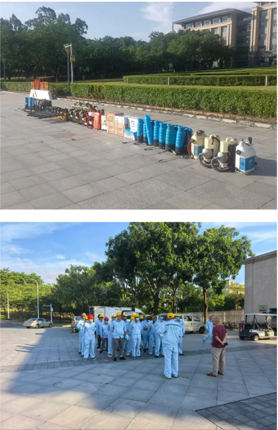 在消杀工作正式开展前,为确保消杀操作科学、规范、高效,寮步镇卫健局的专业工作人员莅临我校,现场进行消杀指导。他们结合校园环境特点,从消杀药剂的选择、配比浓度,到重点消杀区域的确定,再到消杀器械的正确使用方法,都进行了细致讲解和示范操作。后勤保卫部高度重视此次消杀工作,提前安排了消杀队伍全程参与学习,为后续高质量完成消杀工作打下坚实基础。